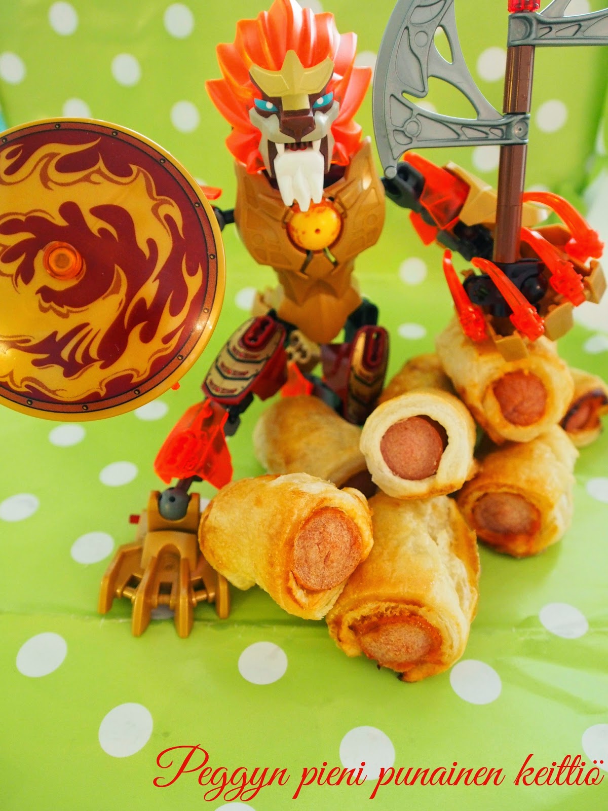 Leikkaa nakki puoliksi. Voitele taikinalevy ketsupilla. Ota taikinasta ohuita siivuja pizzaleikkurilla. Kiedo lehtitaikina nakin ympäri ja aseta leivinpaperille, niin että saumakohta jää alaspäin. Voitele käärö munalla ja valmista 225 asteessa noin 10 minuuttia.