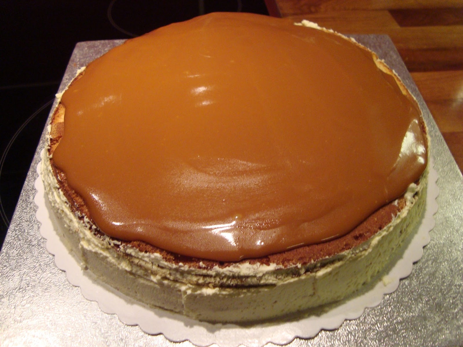 Tämä määrä riitti halkaisijaltaan 24 cm kakkuun sekä täytteeseen tuli pieni määrä kinuskia.