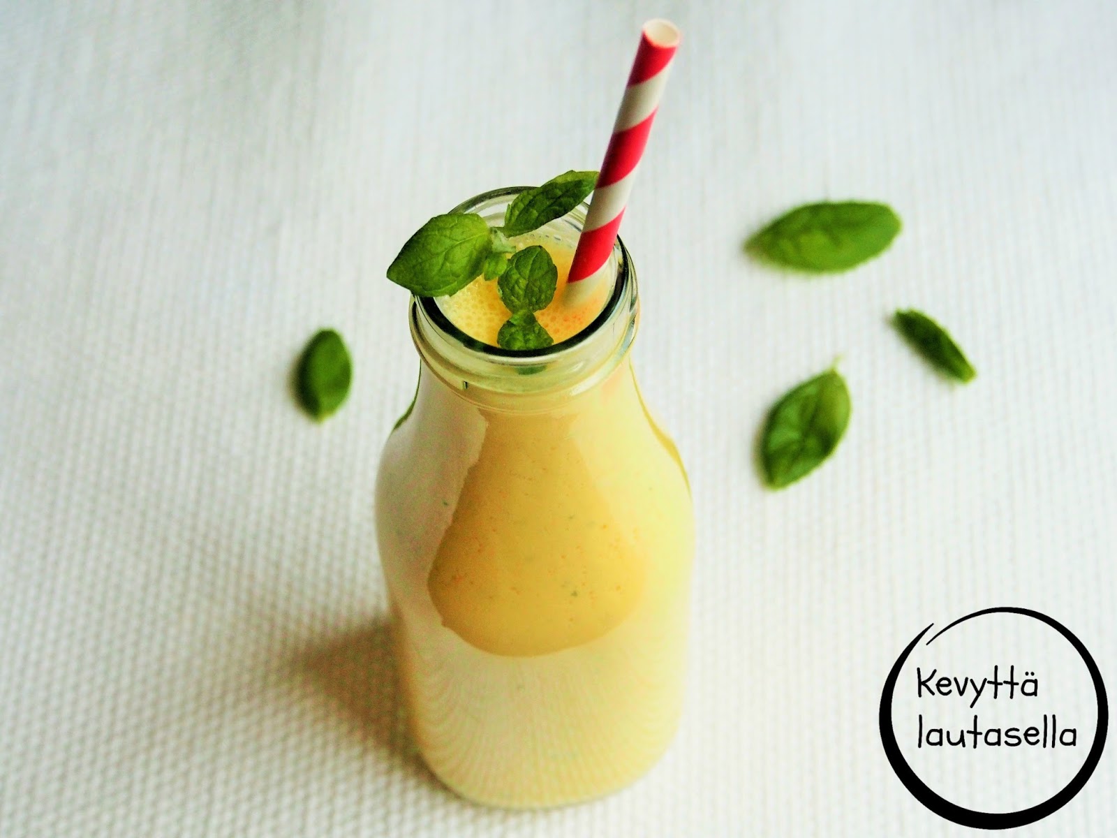 Mangosmoothie on ihanan raikas kevyt juoma, joka antaa päivään mukavasti potkua ja värienergiaa. Rasvaton jogurtti, mango, tuore minttu ja jääpalat saa aikaan herkullisen smoothien, joka valmistuu suht vaivattomasti aamutuimaankin. Mangosmoothie on oiva aamupala- ja välipalanajuoma. Smoothien saa otettua näppärästi myös evääksi kouluun, töihin ja harrastuksiin, jos on vain mahdollisuus säilyttää smoothie kylmässä.