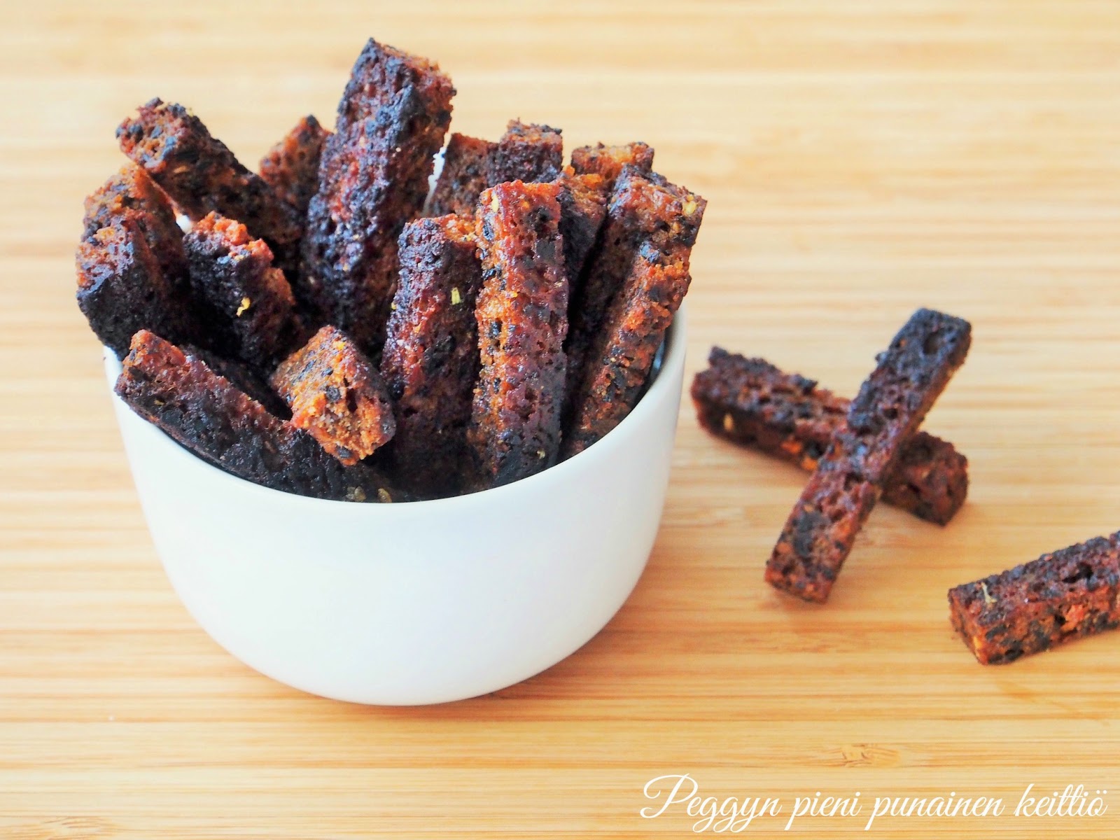 Herkullista saaristolaisleipää jäi vielä hieman jäljelle joulusta, joten halusin antaa leivälle lisämakua uuden vuoden juhlia ajatellen. Saaristolaisleipä muutti muotoaan ja päätyi leipätikuiksi! Saaristolaisleipätikut saivat ihanan rapean pinnan ja hentoisen valkosipulisen maun, mikä sopi leipään hyvin. Leipätikut sopivat keiton ja salaatin kanssa, mutta niitä on myös hauska dippailla pikkusuolaisina suupaloina ihan sellaisenaan lempidipin kanssa. Jos saaristolaisleipää ei löydy kaapista, voit tehdä mistä tahansa suht kiinteästä ruisleivästä leipätikkuja.
