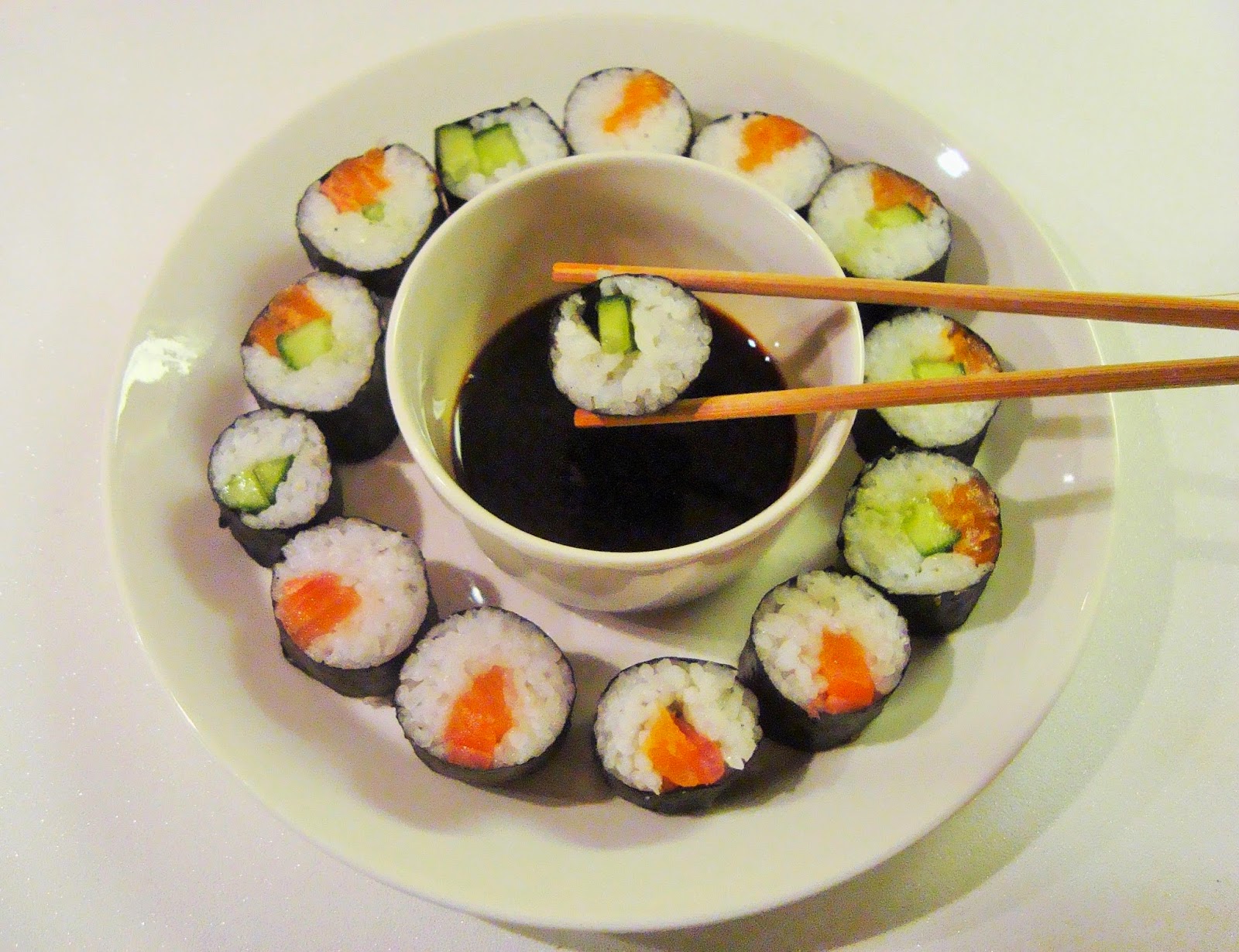 P.s. Löysin kaupasta alle 9€ valmiin pakkauksen, jossa oli melkein kaikki sushin tekemiseen tarvittavat elintarvikkeet. Helpottaa ensikertalaista kummasti.