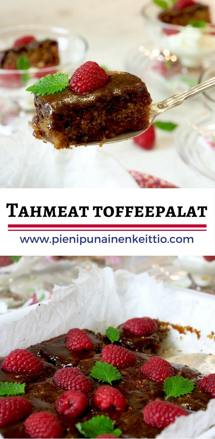Tahmeiden toffeepalojen salaisuus on ihanan kuohkea leivospohja ja taatelit. Kaiken kruunaa tahmea tofffee-kastike, jota saa olla paljon eli more is more. Voita, sokeria ja kermaa ei myöskään säästellä. Ihmekös tuo, mistä toffeepalat saa syntisen makunsa.
