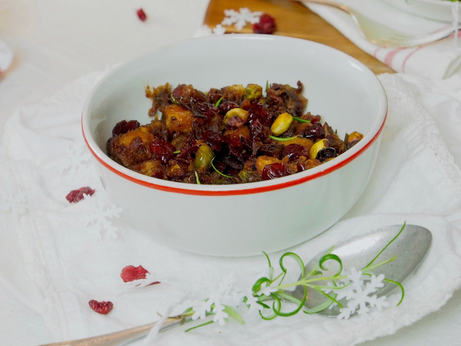 Täytetty broileri on tuttu näky brittien juhlapöydässä. Broilerin sisus täytetään erilaisilla raaka-aineilla ja sen jälkeen broileri nostetaan uunin muhimaan. Täytteet imevät itseensä kaikki broilerin hyvät maut ja näin myös pitävät itse broilerin mehukkaana. Täytteet tarjoillaan broilerin kaverina saman aikaisesti. Täytteet vaihtelevat tekijänsä mukaan ja niin myös meillä. Meillä joulubroileri sai jouluisen täytteen, nimensä mukaan. Täytteeksi tuli, karpaloita, taatelia, pistaasipähkinöitä, leipää, sipulia, tuoretta rosmariinia ja mausteita. Täyte oli superherkullista.