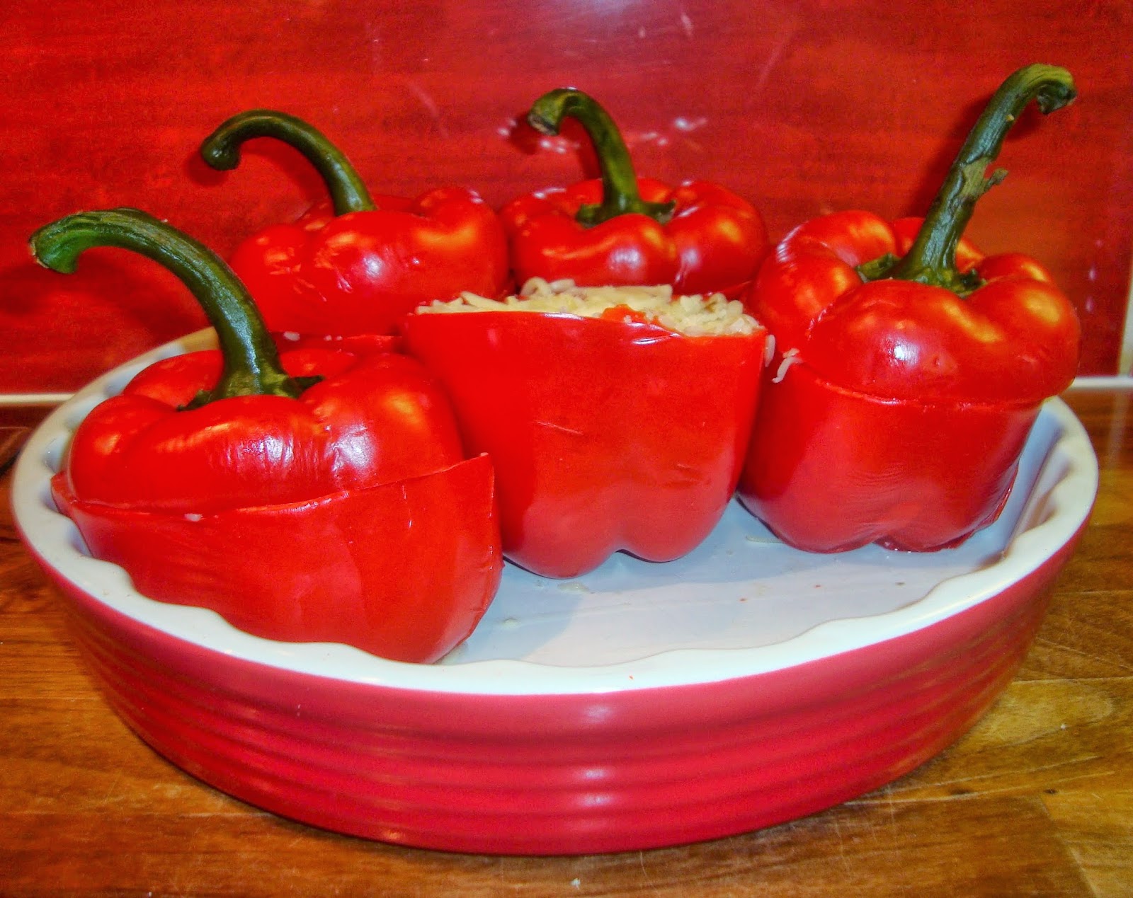 Kauniin punaiset ja makeat paprikat saivat tulisen täytteen kebablihasta, valkosipulista, chilistä, riisistä ja täyteläinen cheddar kruunasi vielä herkullisen kokonaisuuden. Lopputulos oli todella maukas. Paprikoista saa myös kasvissyöjille tehtyä näppärästi oman vaihtoehdon, kun jättää lihan pois täytteestä. Täyte maistui hyvältä ilman kebablihaakin, sekin tuli kokeiltua. Paprikat ovat hyvin täyttäviä, joten yksi iso paprika riittää henkilöä kohden.