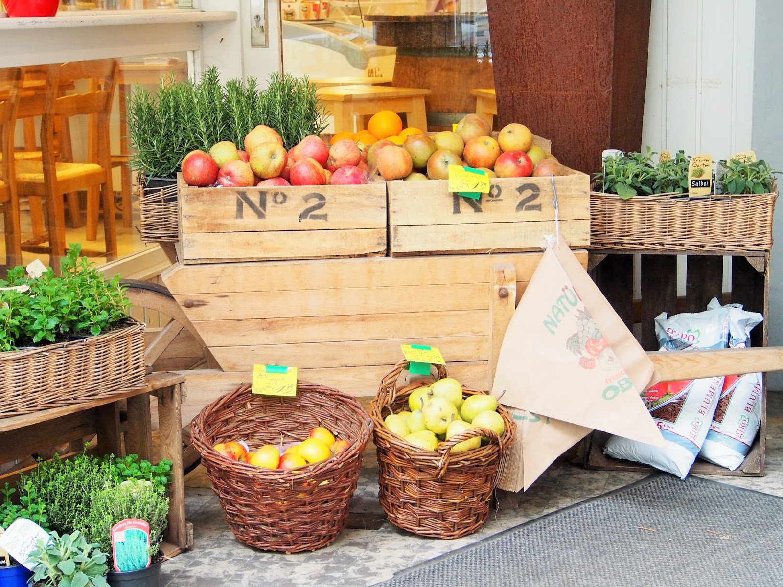 Olen ollut vain muutaman kerran yksin reissussa ilman perhettä tai sukulaista. Arvatkaa vaan jännättikö tätä keski-ikäistä naista suuressa kaupungissa. Nimittäin seuraavana päivänä suuntasin kaupungille yksin. Ihan ensimmäisenä kurkkasin kauppakeskus Sevenin tarjontaan. Olo kalliiden merkkiliikkeiden ympäröimänä sai kaipaamaan jotain maanläheisempää ja muistin paikallisten kohtauspaikan eli torin. Torikojujen kauneinta antia oli upeat kukkivat kukkaset, hedelmät, vihannekset, pääsiäiskaramellikorit, viinikojut ja tietenkin makkarabaarit. Kello ei ollut kuin kaksitoista ja siellä tämä suominainen söi elämänsä suurinta bratwurstimakkaraa ja joi pullosta olutta! Taisin olla paikallisten huvituksen kohde, koska sain osakseni niin paljon hymyjä. Pidin kunnialla suomalaisten juomakulttuurin mainetta siis yllä.