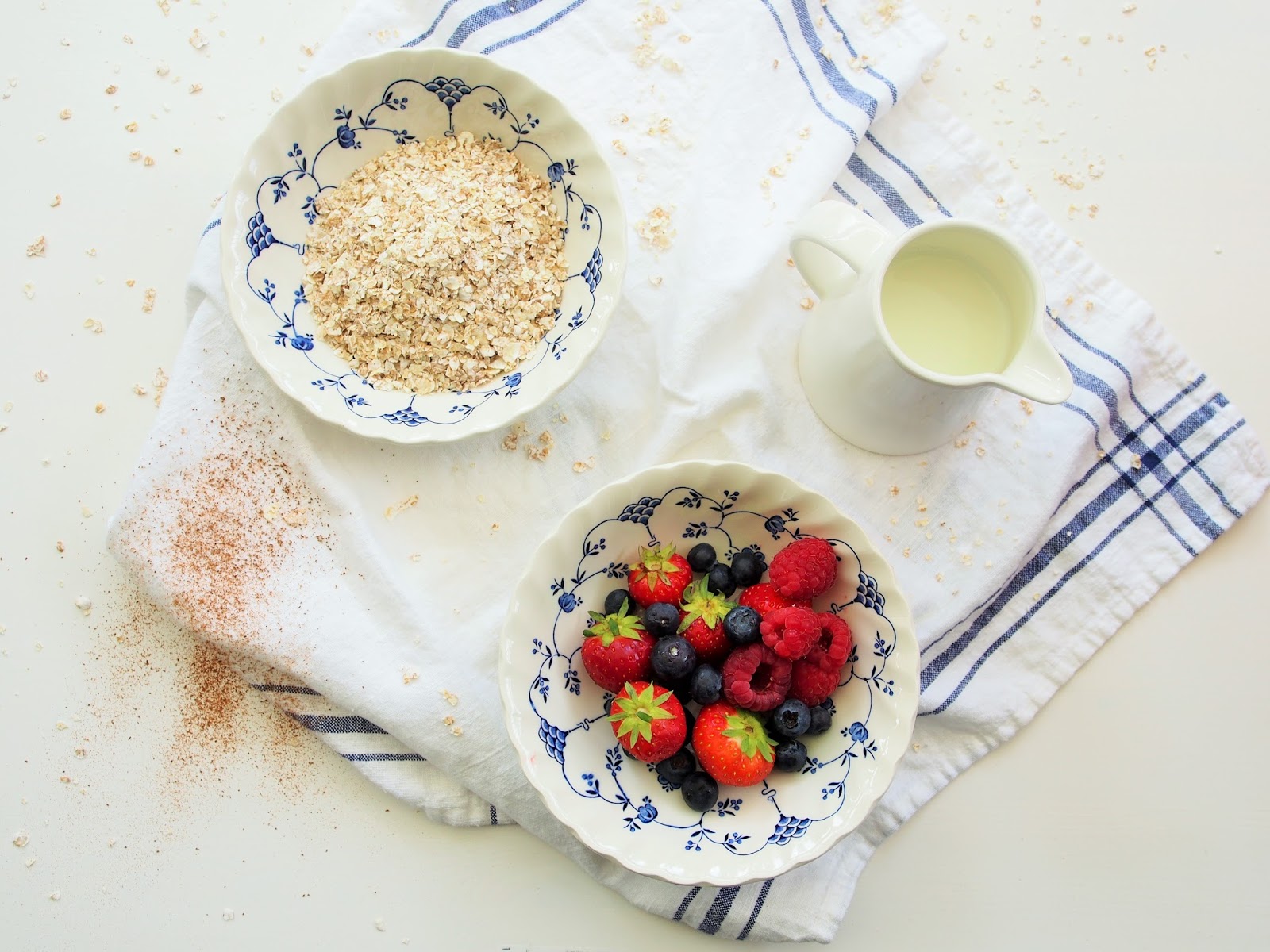 Kaada puurohiutaleet, kaneli ja maito kulhoon. Sekoita ja nosta jääkaappiin yöksi tekeytymään.