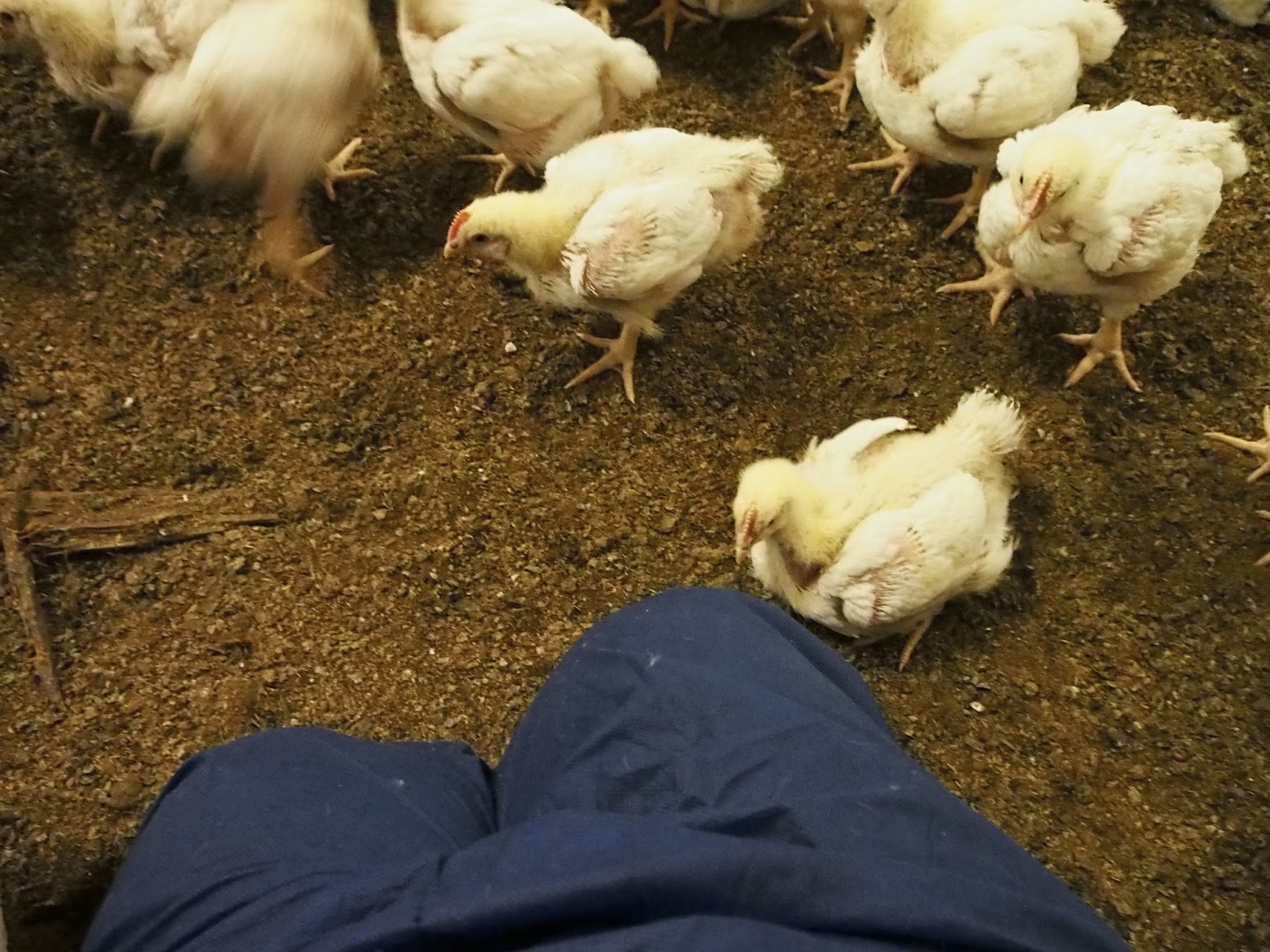Tiedän tämän, olen ollut muutaman päivän töissä broilerihallissa (eli suom. huom. kerännyt niitä kituvia ja kuolleita eläimiä). Linnut tunnistavat 20 lajitoveria. Nyt ne ovat koko ajan ventovieraiden keskellä. Niillä on jatkuva nälkä, sillä ne on jalostettu siihen, että syövät (ja kasvavat koko ajan). Ja tiedätkö mikä on yksi syy, että poikasia kuolee eniten? Koska luonnollisissa olosuhteissa emo opettaisi niitä syömään. Nyt ne eivät ole emoa koskaa edes nähneet.